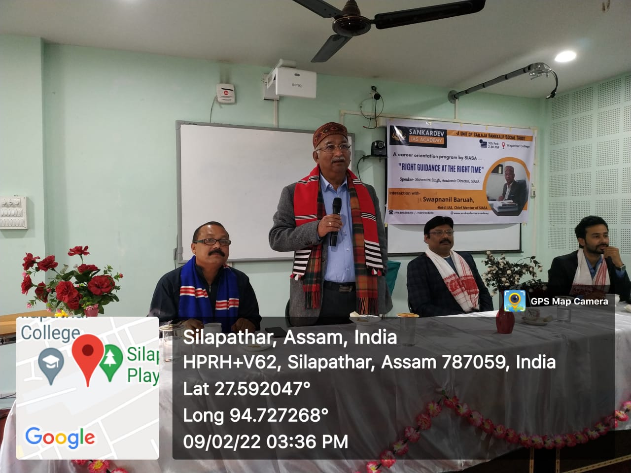 Personality Development and Career Guidance Organised by Career Counselling Cell Silapathar College, Counsellor Bhargav Kr. Baruah, Perfect Trainer, Guwahati |