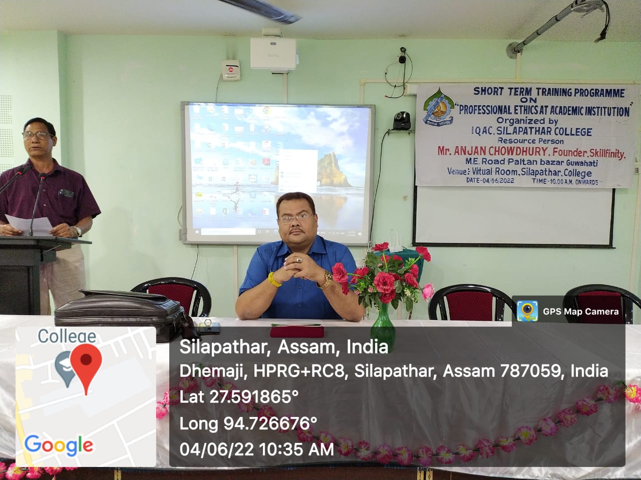 Short Term Training Programme on "Professional Ethics" at Academic Institution, Organised by IQAC, Silapathar College, Silapathar, Resource Person Mr. Anjan Chowdhury, Founder Skillfinity, P |
