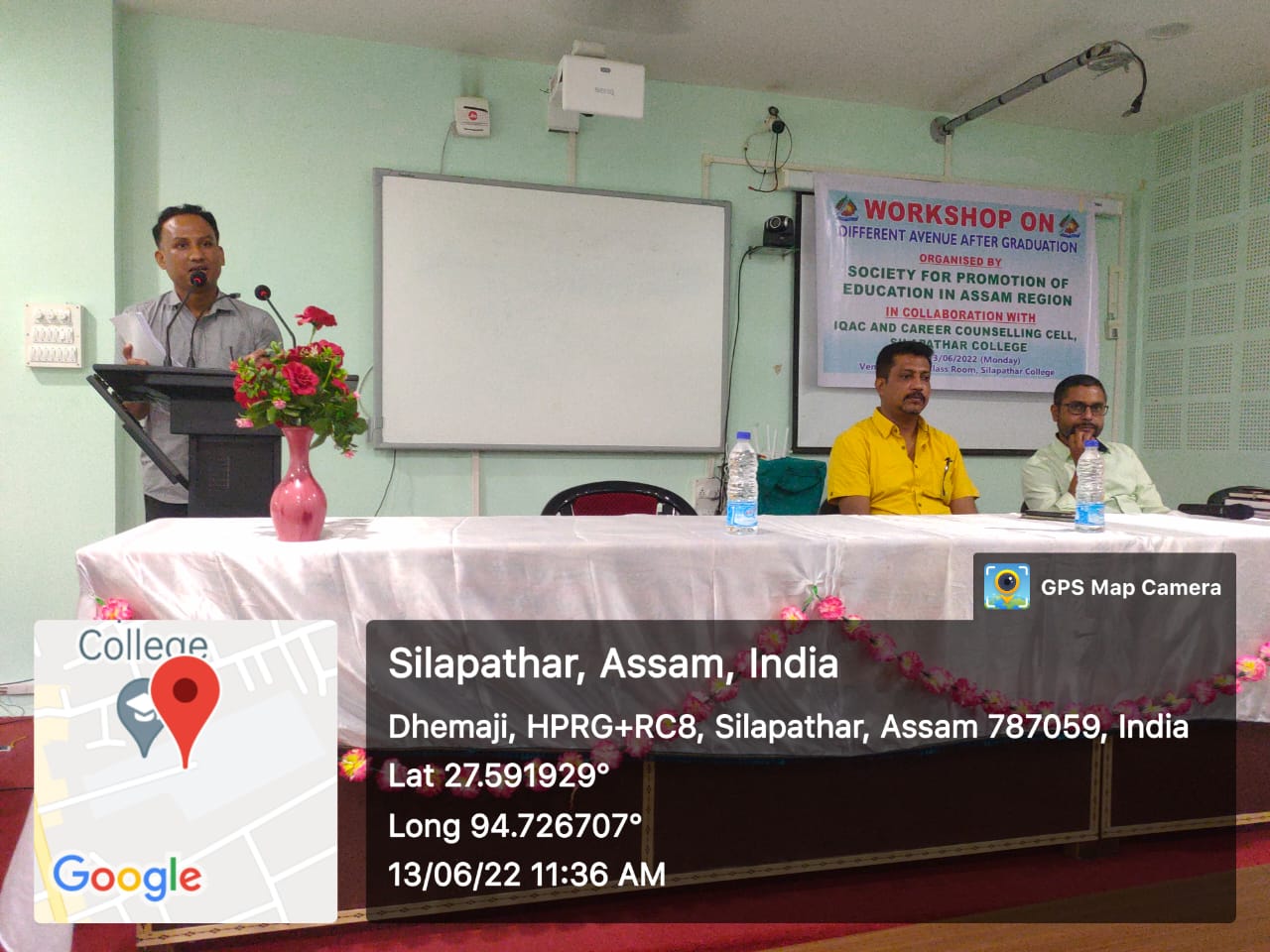 Workshop on different avenue after gradation organised by society for promotion of education in assam region in collaboration with IQAC and Career Counselling Cell, Silapathar College, Silapathar |
