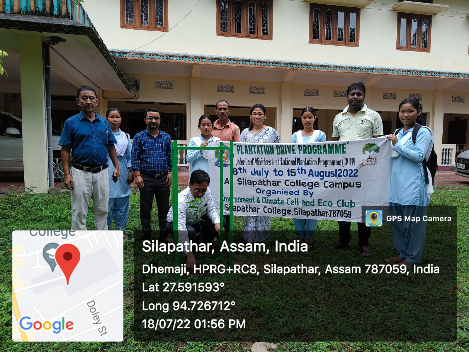 Plantation Drive Programme under Chief Minister Institutional Programme (CMIPP) 18th July to 15th August 2022 organised by Environment and Climate Cell and Eco Club, Silapathar College |