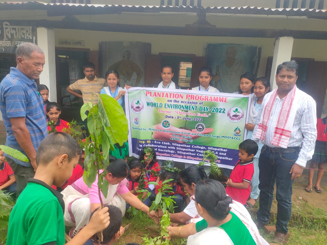 Plantation Programme on the occasion of World Environment Day 2022 theme only one earth organised by Eco Club, Silapathar College, Silapathar |