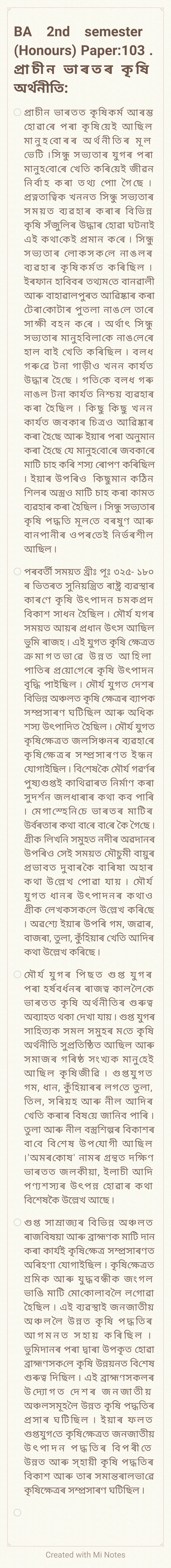 | Siva Nath Pait | TDC 1ST YEAR ARTS | History | Agriculture in ancient India | View |